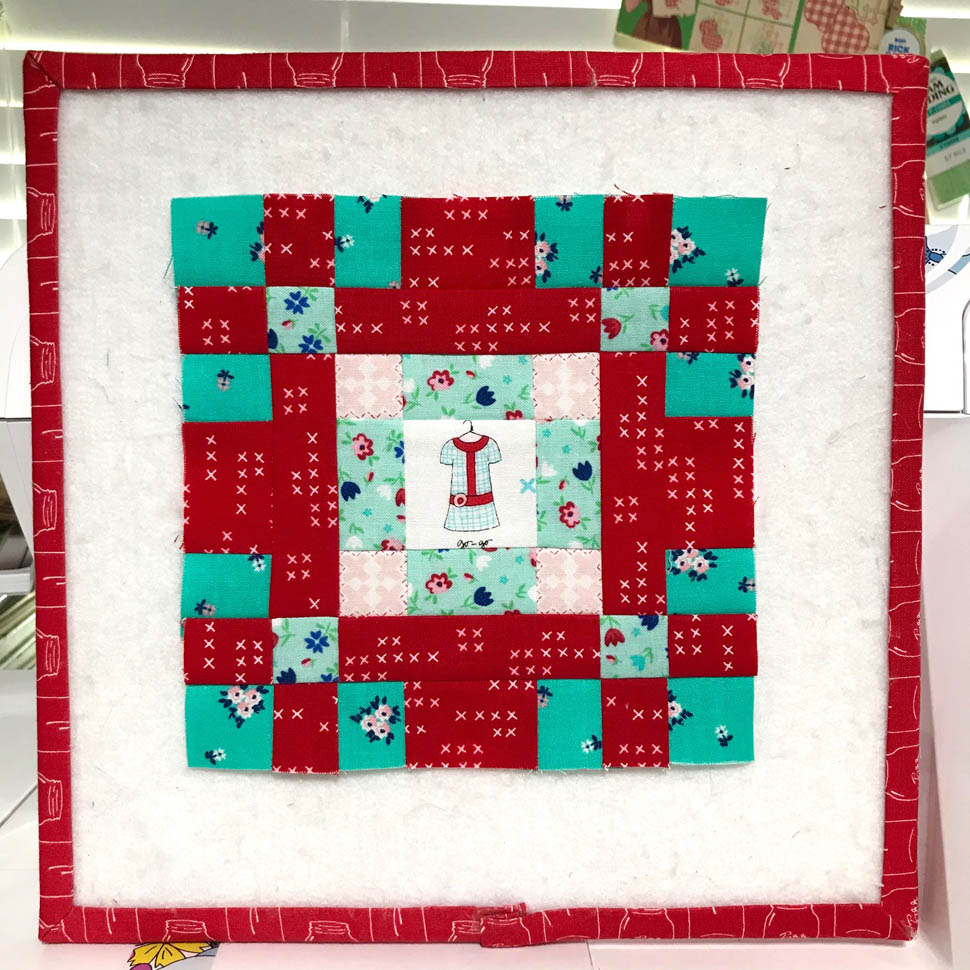 Since the piece of fabric I drew was vintage, I decided to use reproduction 30's fabrics for the project. I had this Modern Gem P2P quilting pattern in mind when I chose to piece that mat section, I just think it is such an awesome design by Anita Shackelford.